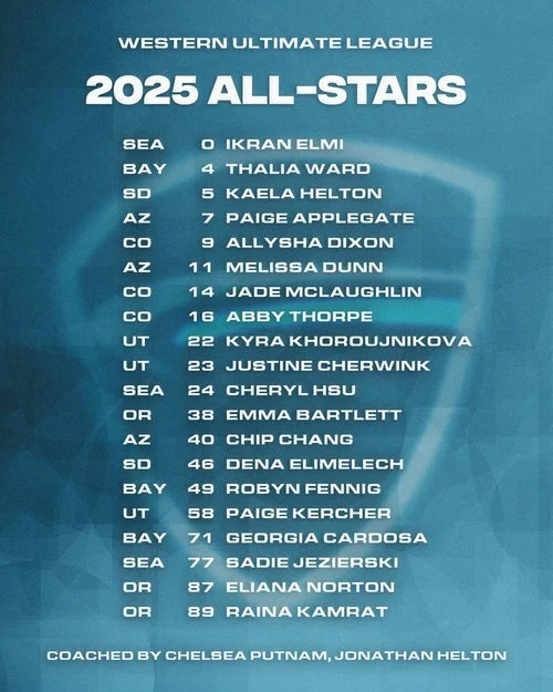This groundbreaking event marks the first time in professional ultimate history that players from the Western Ultimate League and Premier Ultimate League will compete against one another in a head-to-head All-Star game. Each league will send a full roster of 20 athletes selected through fan voting and team nominations. These players represent the best of what both leagues have to offer — elite skills, unmatched athleticism, and leadership on and off the field. More than just a showcase of talent, this event is a celebration of the community, the progress, and the players pushing professional women’s and non-binary ultimate forward.